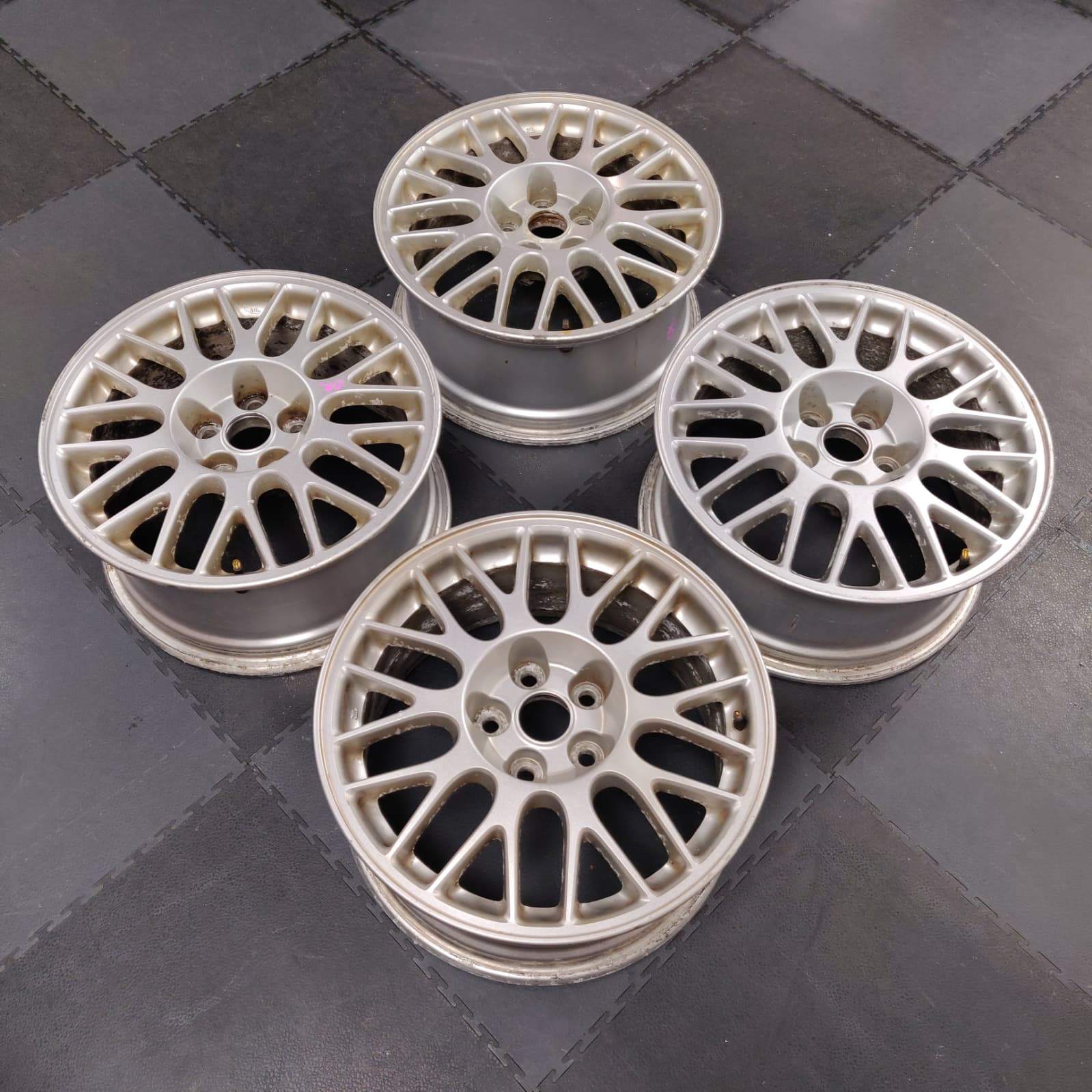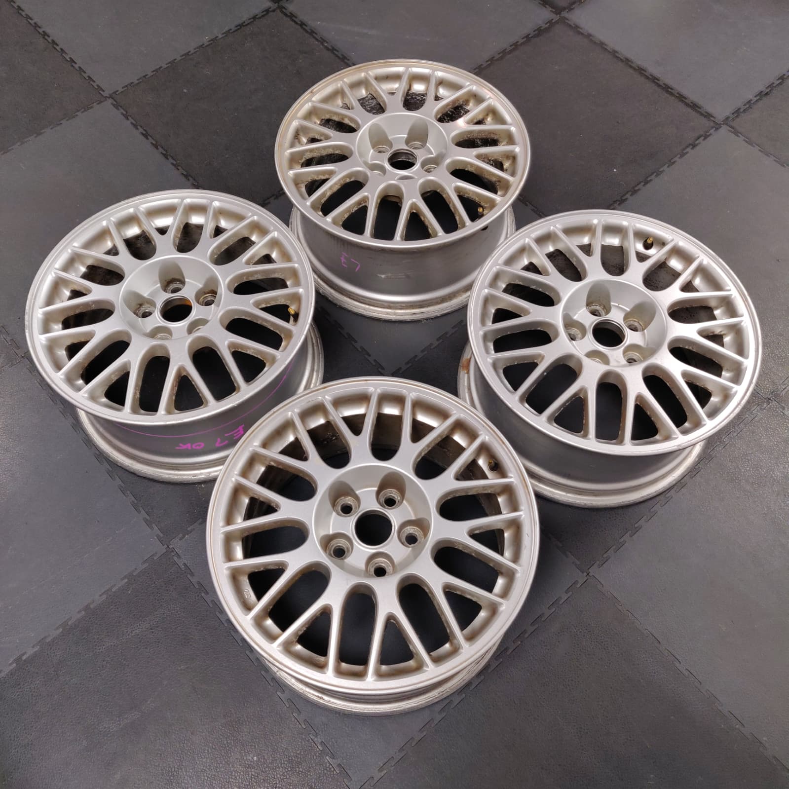 Set of 4 Genuine Mitsubishi Evolution VIII 17″ Enkei alloy wheels, in good used and working condition, no cracks or buckles however wheels do have surface corrosion, please refer to photos.